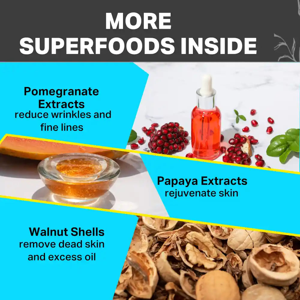 - A blackhead eliminating Charcoal Face Scrub to deep clean pores.
