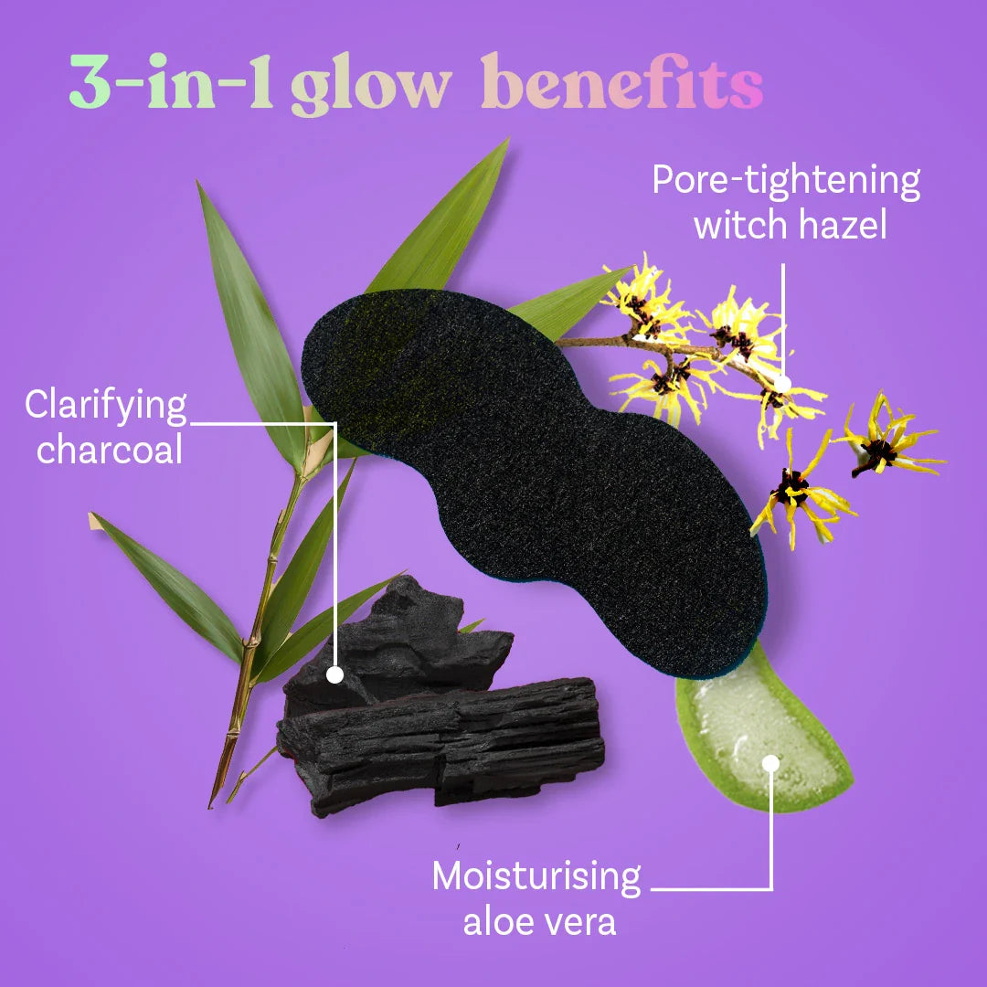 - 3-in-1 Glow Boost: Charcoal, aloe, and witch hazel = deep clean + hydration!