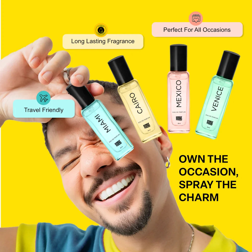 - Premium perfume git kit for men: includes four fragrances from around the world, for different moods & occasions - packed in a beautiful box for gifting