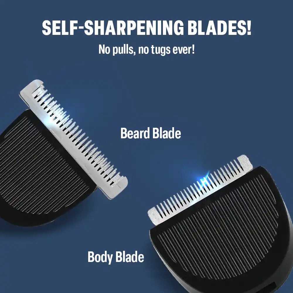 - Self- Sharpening Stainless Steel: that last way longer than regular blades in T-shape for beard precision and U-shape for body trimming.