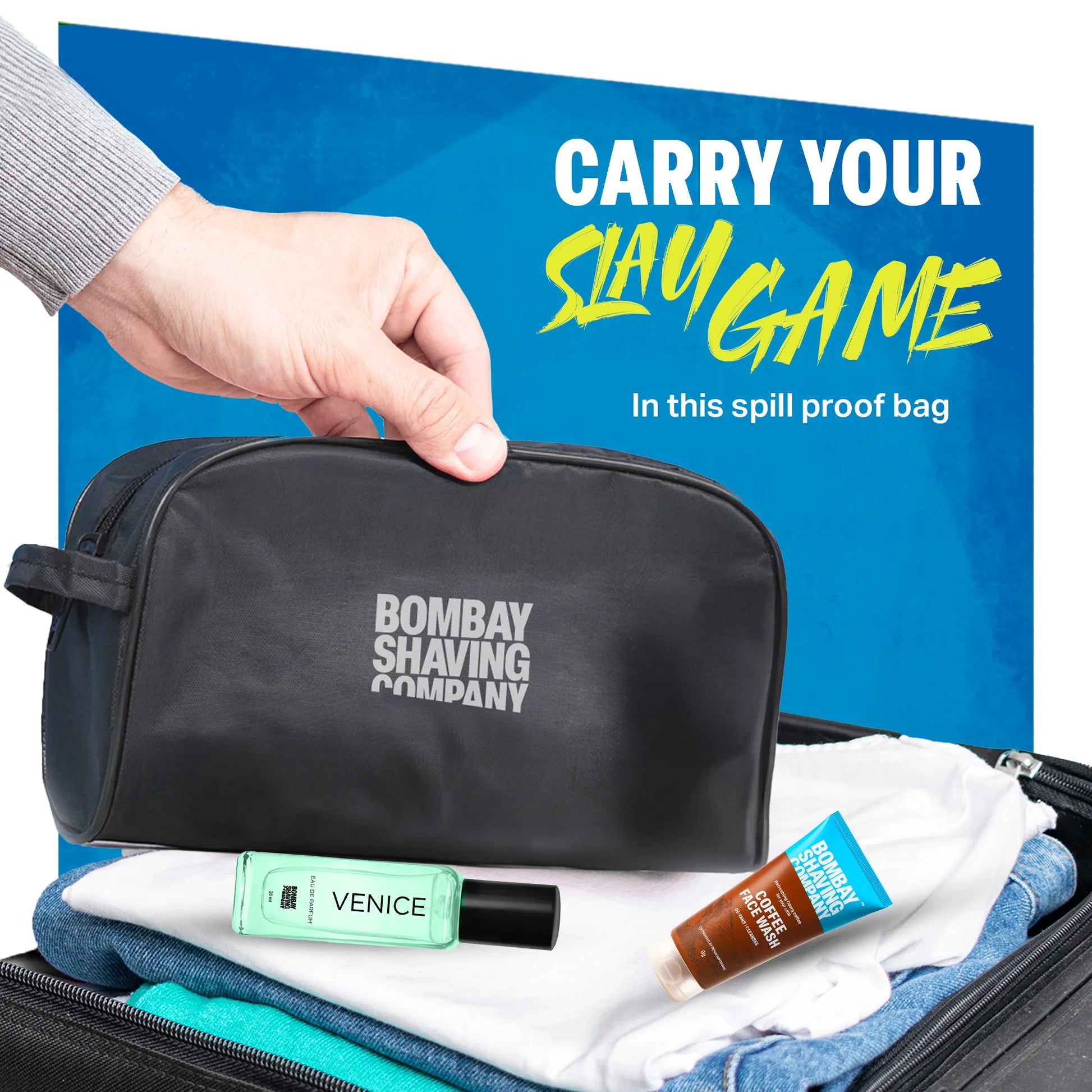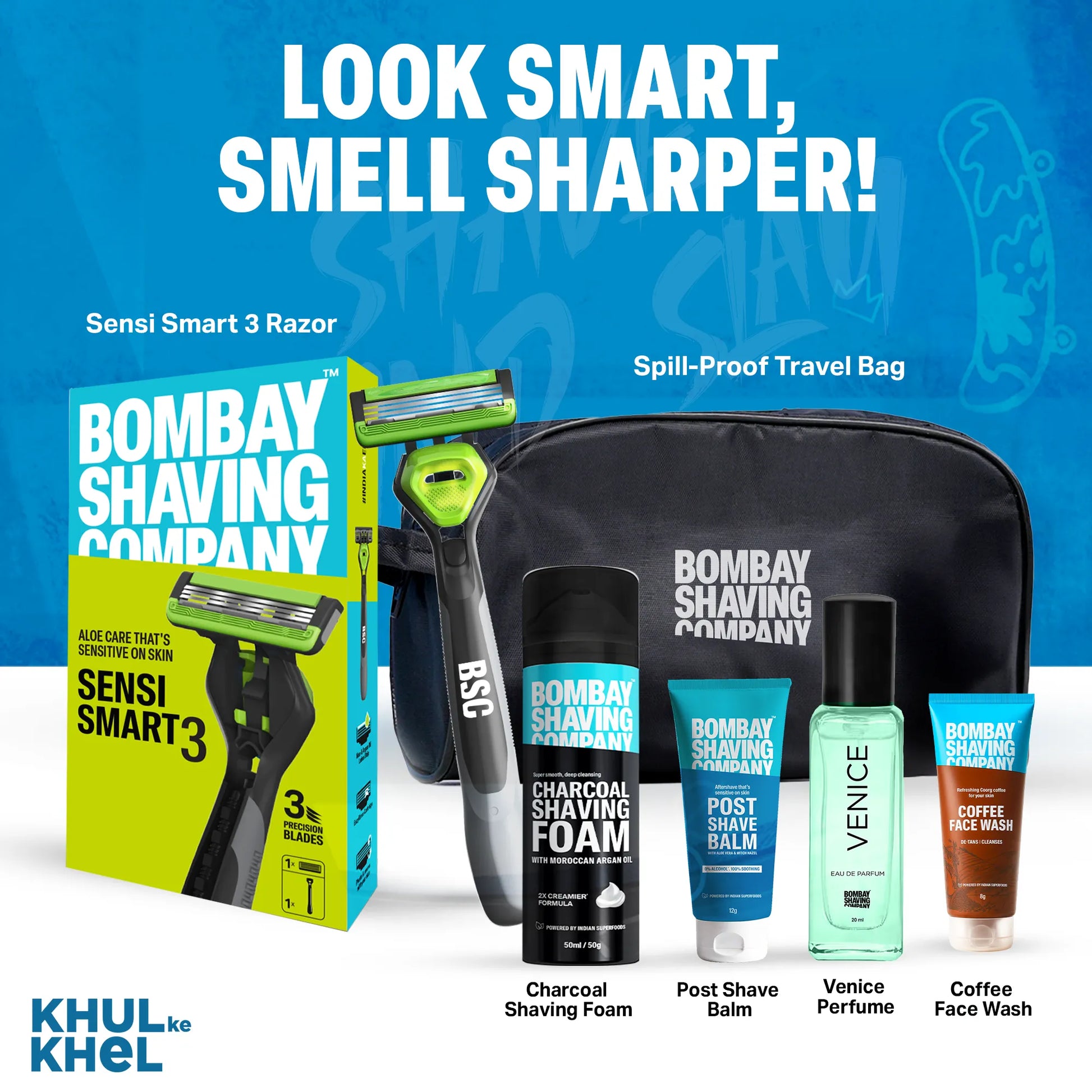 Meet your grooming game-changer: The Shave & Slay Kit packs a Coffee Face Wash, Charcoal Shaving Foam, Sensi Smart 3 Razor, Post Shave Balm, and Venice EDP in a sleek travel pouch—your all-in-one upgrade for main character energy, anywhere.